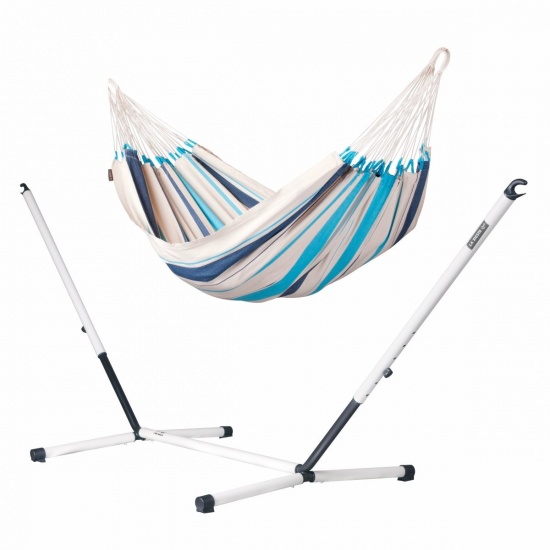 Caribeña Aqua Blue - Hamac simple en coton Le hamac simple Caribeña Aqua Blue à rayures au design rafraîchissant. Un souffle venu tout droit des Car...